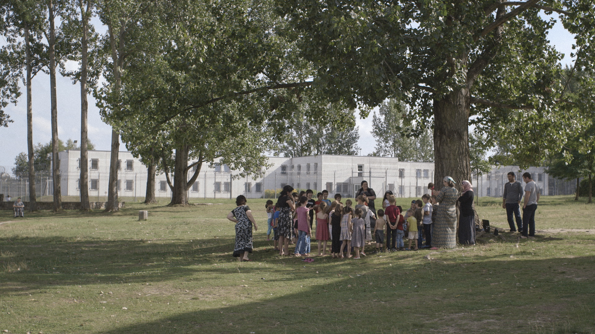 A foggy landscape with new buildings in Eisenhüttenstadt at the German-Polish border: “Eisen”. Film portraits of asylum seekers from all over the world are set among impressions of a dreary life in a strictly composed sequence of images. They tell of hopes for a better future in Germany.